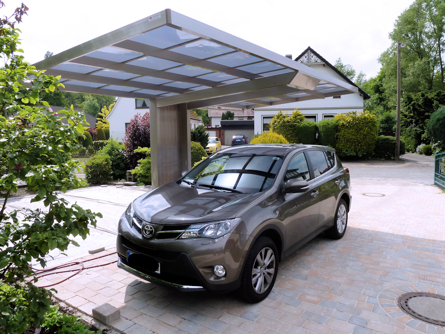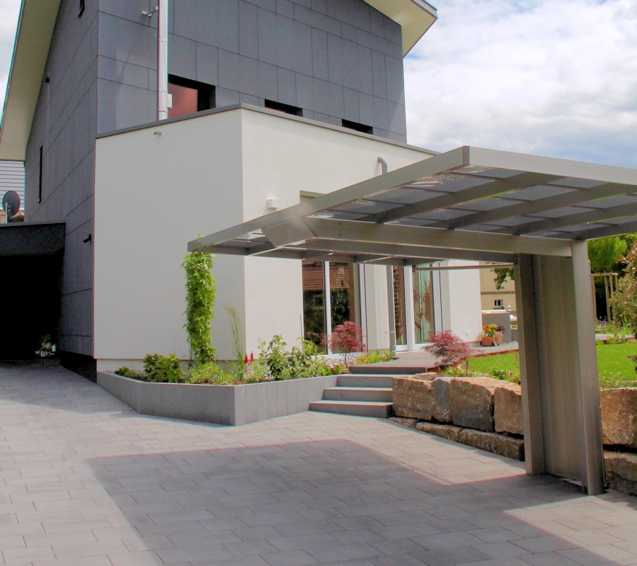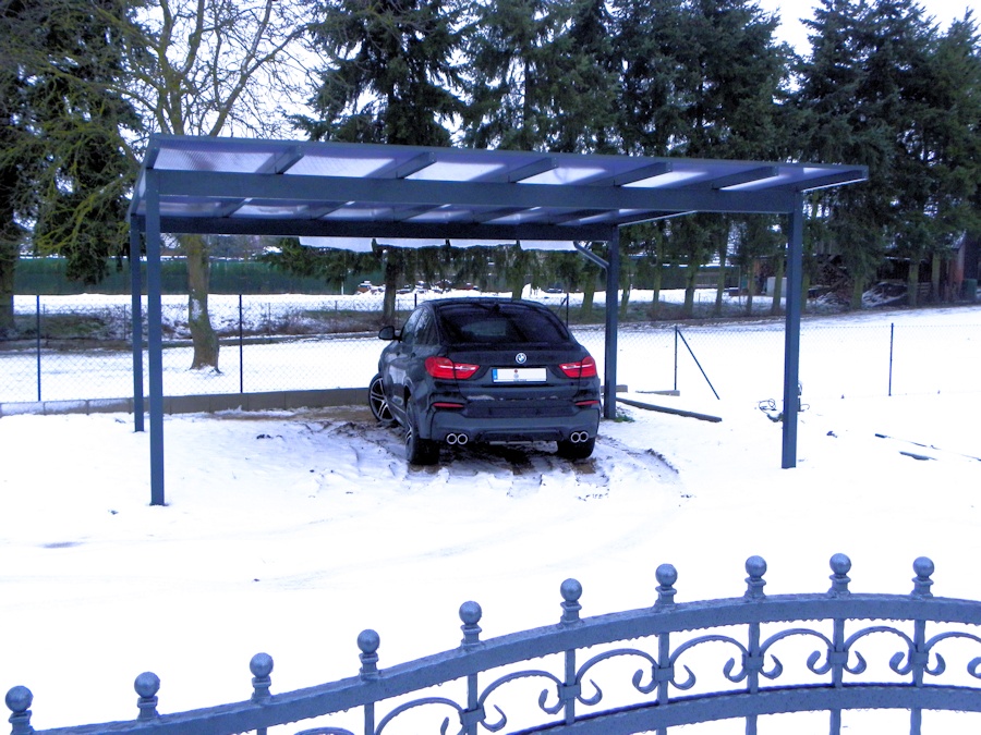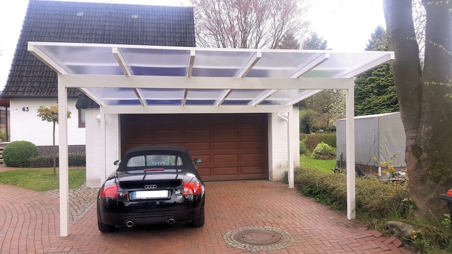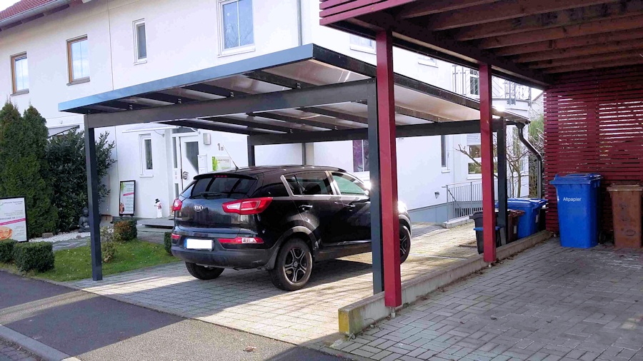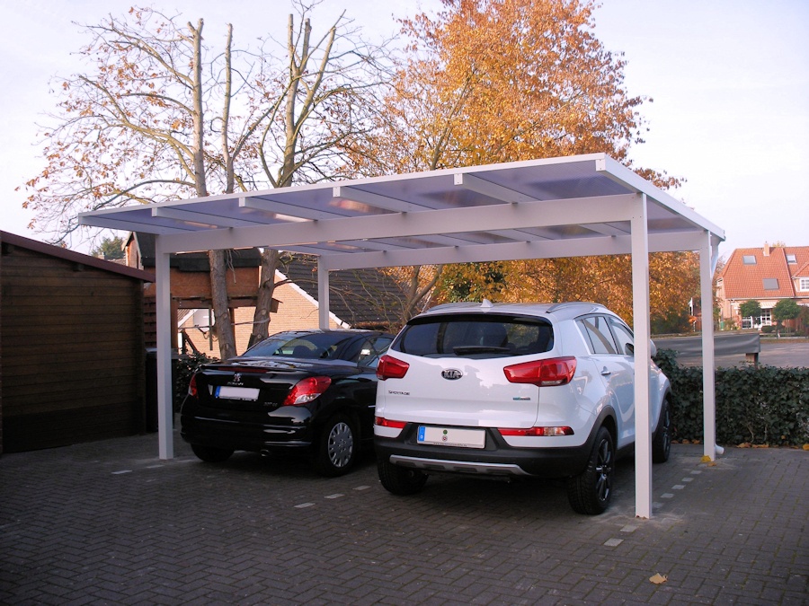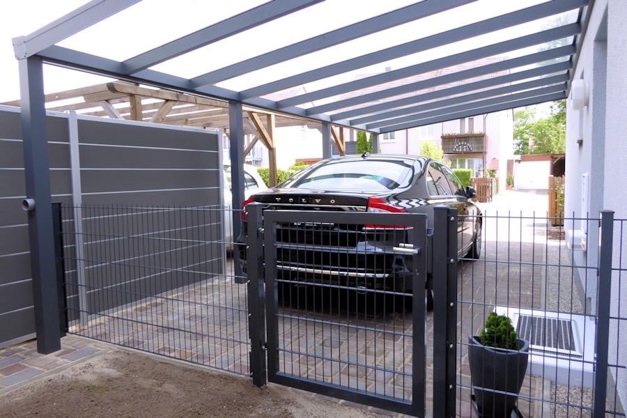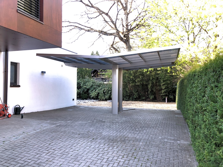 Das elegante Flachdachcarport aus Alu aus unserer eigenen Produktion.