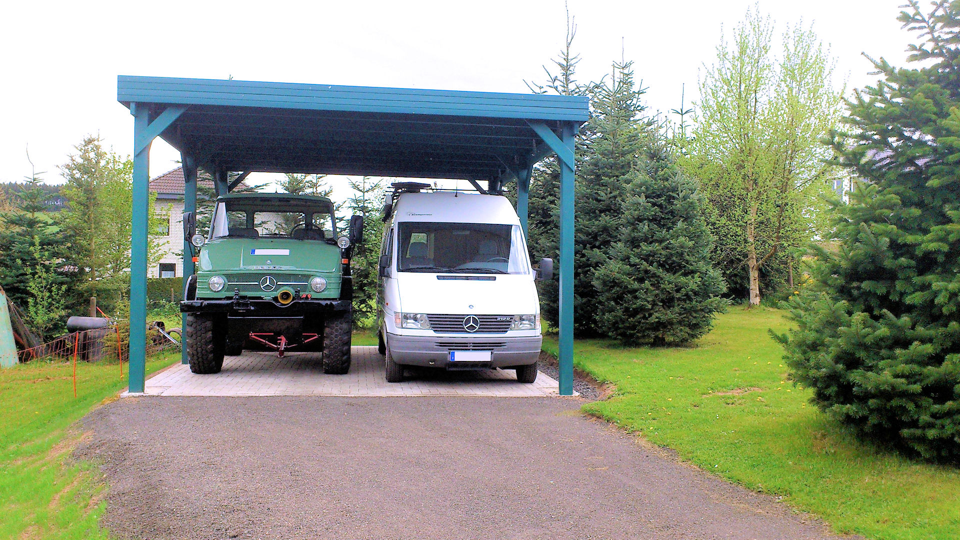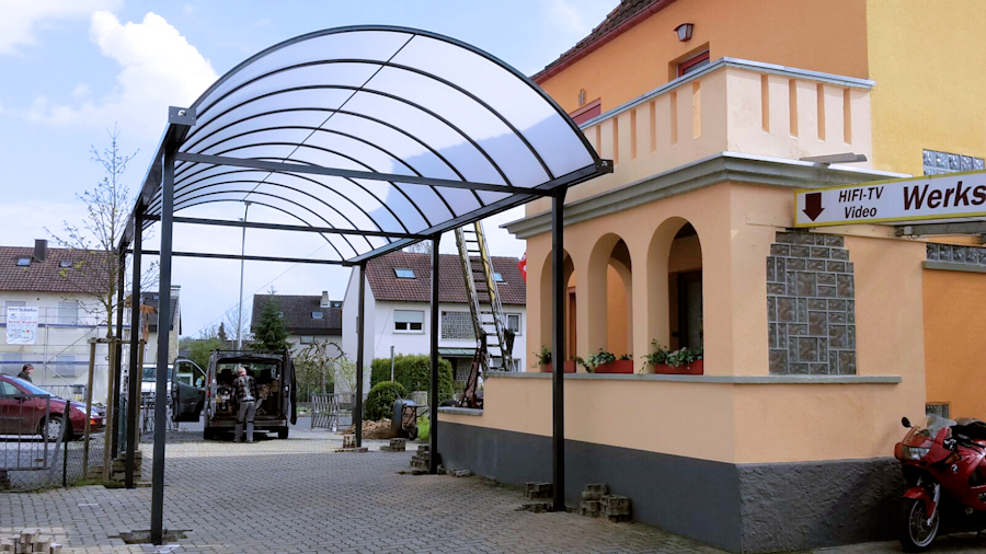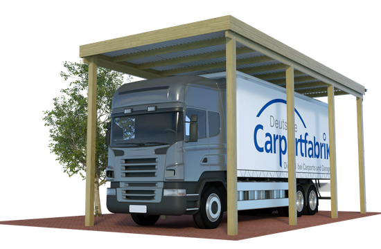 Unsere höchsten Carports für LKW, Einsatzfahrzeuge und sehr hohe Wohnmobile. Bis 3,90m Durchfahrtshöhe