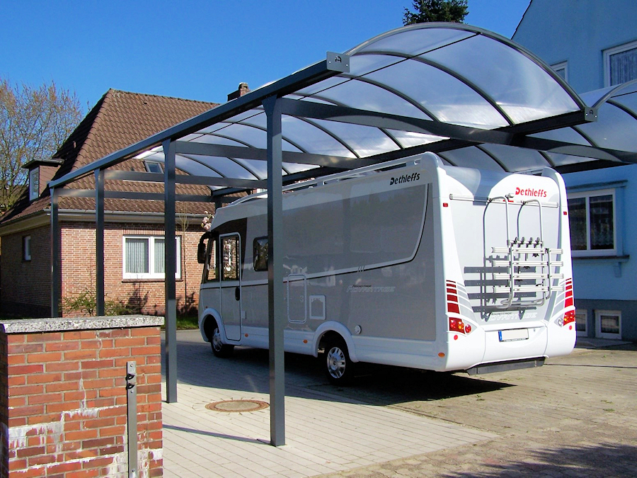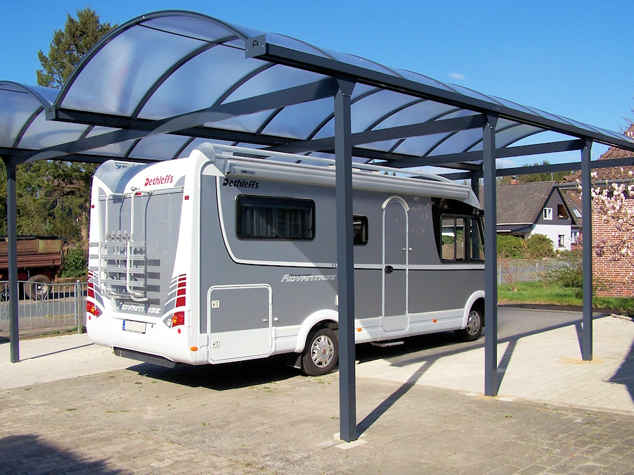 Unsere Wohnmobil-Carports für Campmobil, Wohnwagen und hohe Transporter.