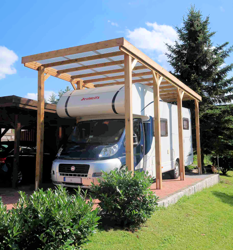 Hochwertiges Caravancarport für Ihren Caravan, Wohnwagen oder LKW. Wir bieten Ihnen den passenden Carport für Ihr Fahrzeug mit Sonderhöhe an. Wir bieten den Caravancarport als Einzelcarport und als Doppelcarport an. Zu den Carports mit Sonderhöhe