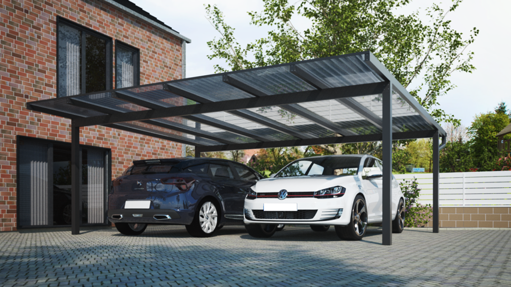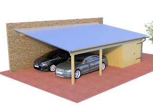 Freitragendes Doppelcarport ohne Mittelpfosten