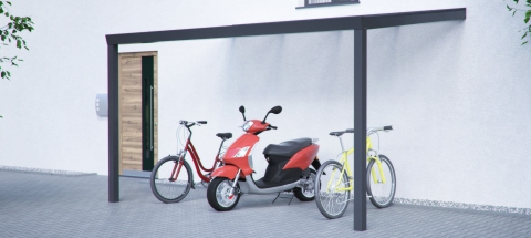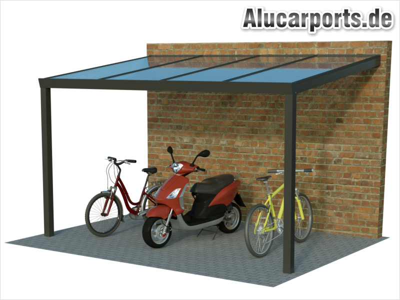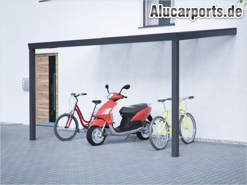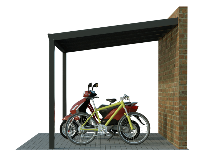 Fahrradunterstand Pultdach-Überdachung als Anbauversion: Platzsparend und modern für Fahrräder.