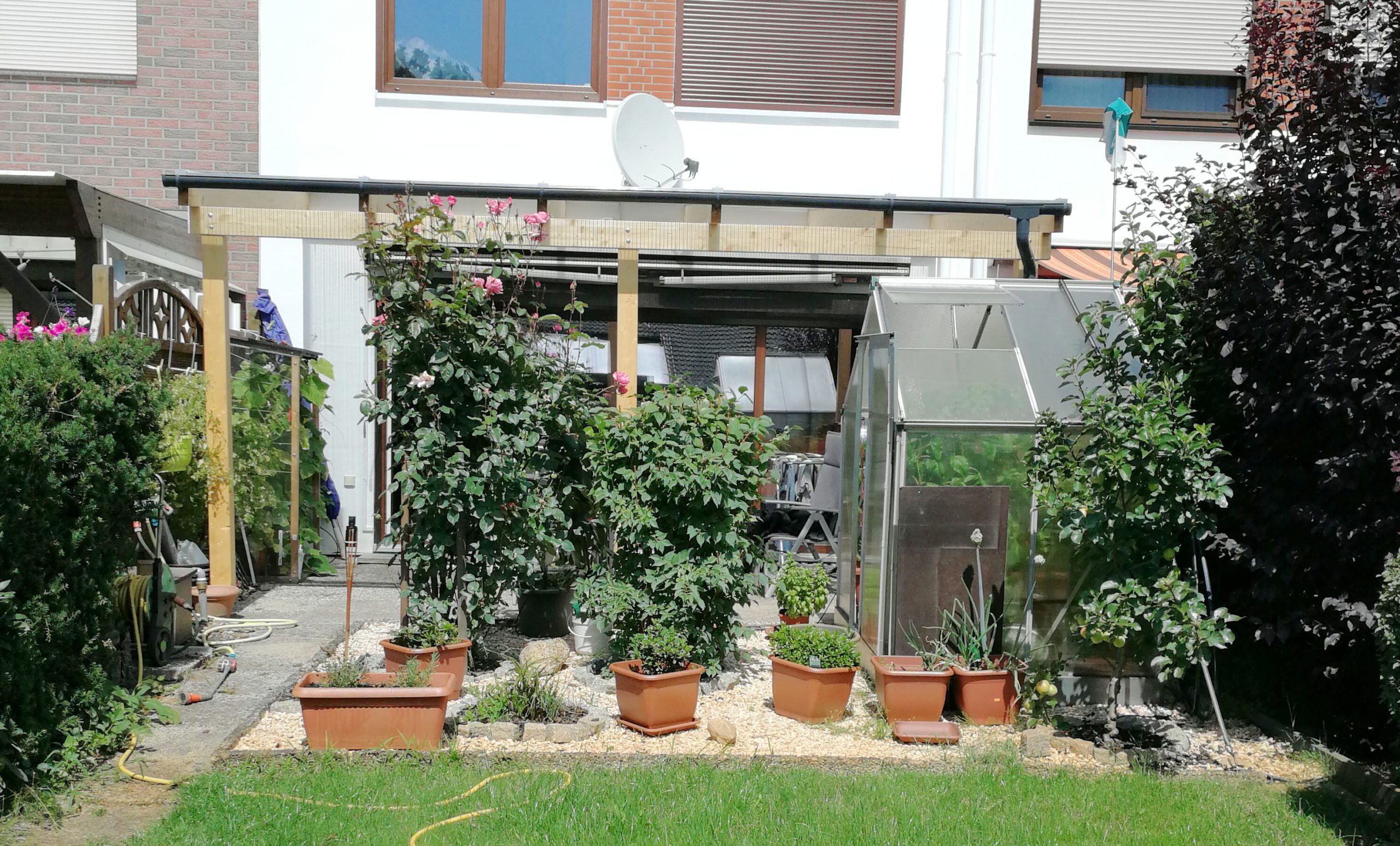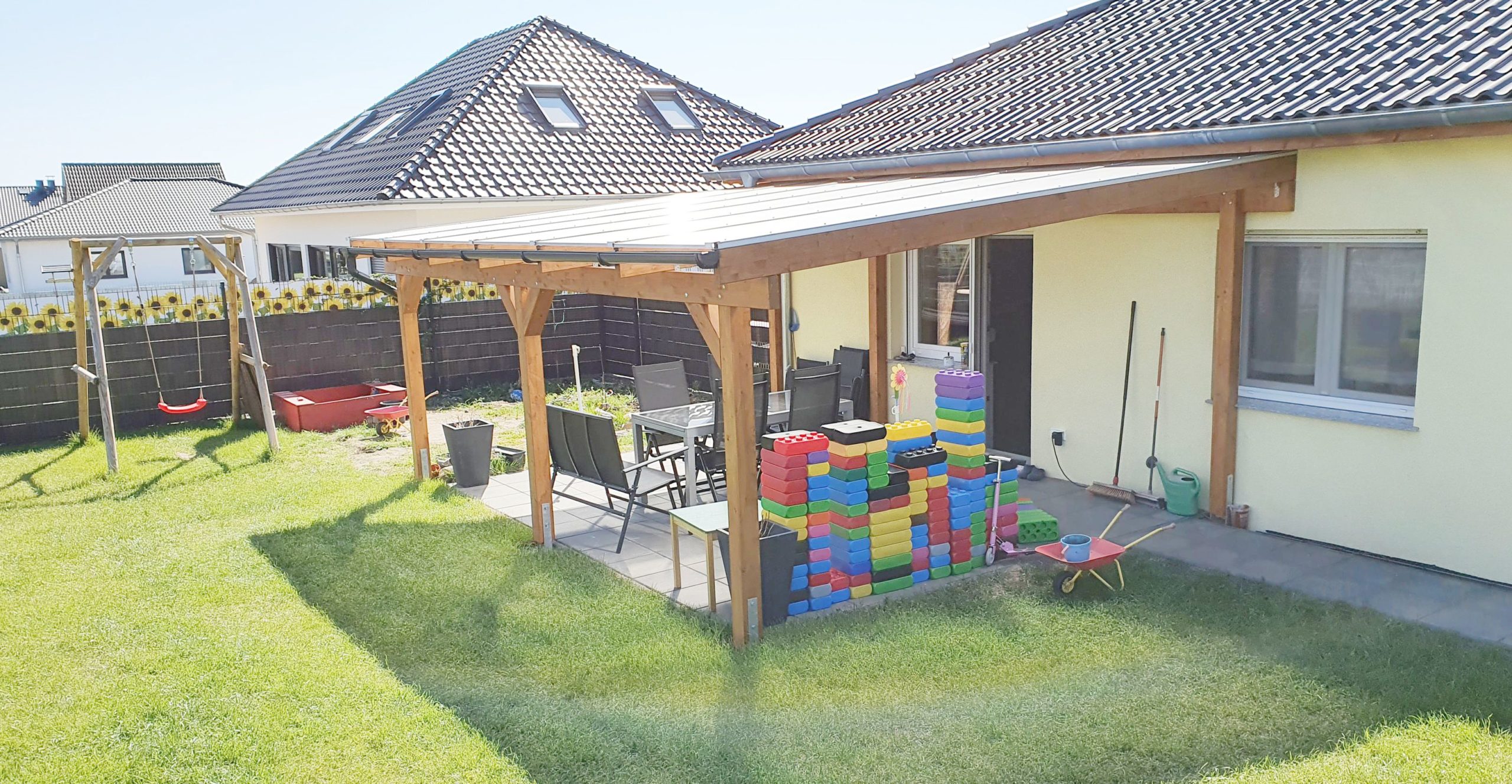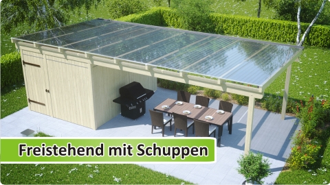 Freistehende Konstruktion neben dem Haus oder komplett alleinstehend im Garten.
