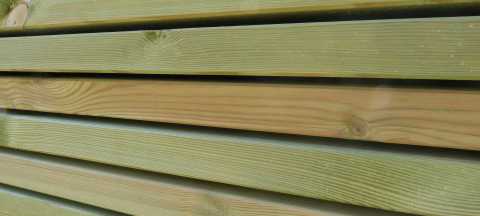 Kesseldruckimprägniertes Kiefern-Vollholz ist das gängigste und günstigste Holz für eine Terrassenüberdachung im Einsatz rund um Haus und Garten.